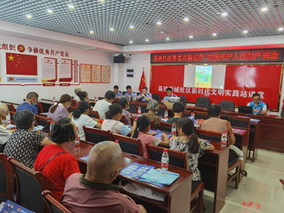 社工聯(lián)合派出所民警向社區(qū)老人宣傳養(yǎng)老詐騙危害性和講解防范養(yǎng)老詐騙的技巧